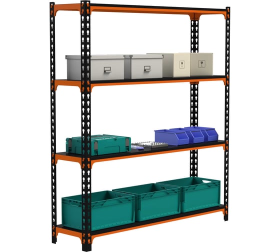 Стеллаж ООО Металекс MID 2200x1600x600 4 полки оранжево-чёрный 107044