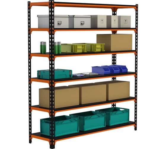 Стеллаж ООО Металекс MID 2200x1800x500 6 полок оранжево-чёрный 107100