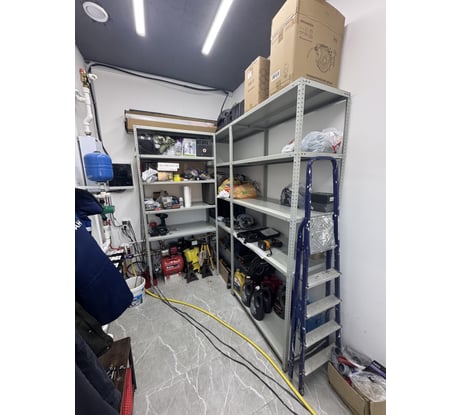 Нормальнйн стеллаж, функцию выполняет. Для сборки нужно обязательно докупить шайбы М6 штук 100, тогда можно будет затягивать болты одним ключом снаружи. Рекомендую обязательно. Силовых уголков всего 24шт, то есть всего на 3 полки из 6. Собирать рекомендую начиная с верхней полки и предварительно не затягивая болты, потом уже когда все полки на месте ставите лазер и по лазеру выставляя каждый угол- затягиваете болты. На глаз ровно по уровню собрать практически нереально. В целом после зарядки всех болтов конструкция получается приличная.