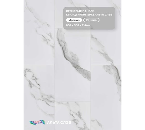 Стеновые КВАРЦ-ВИНИЛОВЫЕ ПАНЕЛИ (SPC wall panel) АЛЬТА СЛЭБ с системой замкового соединения «SeamlessLock» предназначены для стен, монтируются методом приклеивания с использованием клея. Цвет " Мрамор Рейнир", с матовым покрытием.
