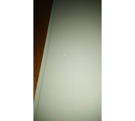 При погрузке или транспортировке (скорее всего) одна панель получила пробоину. Как всегда магазин не способен доставлять такие товары. Их конек чугунная кувалда - это они повредить не смогут :) Можно было положить сверху картонку или старым ковриком отделить хрупкий и тонкий груз от остального, или в пленку пузырчатую упаковать...