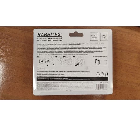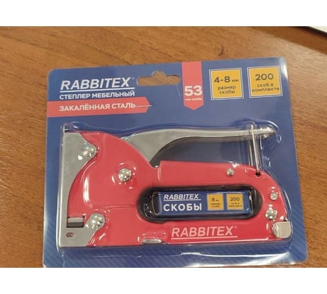 Степлер мебельный ОФИСМАГ стальной, тип 53, 4-8мм, +200 скоб, RABBITEX, 671322483 ₽