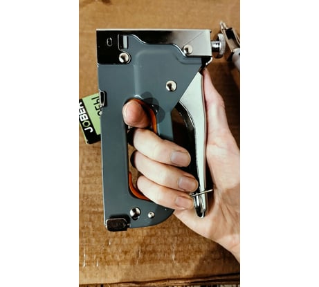 Ручной универсальный инструмент, предназначен для закрепления обивки мебели, укрепления плакатов, закрепления проволочной сетки и строительства теплиц, также возможно просто соединить несколько слоев материала между собой. Модель снабжена регулировочным винтом для возможности оптимальной настройки силы удара и оснащена стопором рукоятки для удобного хранения и транспортировки. Для работы подходят скобы 53 типа.