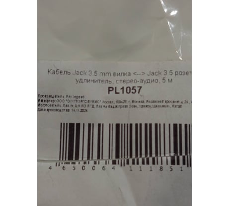 Вопросы и ответы о кабеле Pro Legend Jack 3.5 мм вилка - Jack 3.5 розетка, удлинитель, 5 м. PL1057