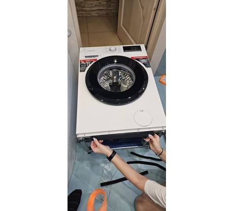 Недостатки: Сборка вопрос. Снизу нет поддона, отсек открыт, не понятно нужно оклеивать вспенненным материалом который в комплекте( из пары самоклеек полосок, две еле приклеелись) , на раме нет одного винта. (см.фото). на отжиме ходит ходуном, супруге пришлось сидеть, на первой стирке белье плохо прополоскала, при END остался порошок (см. На фото), пришлось догонять на 2й круг. В целом не плохо, до бош. 10 лет назад. На дачу купили самсунг за 31тр все четко и очень тихий отжим. В целом не плохо.