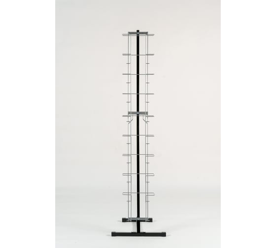 Имеет разборную конструкцию. Каркас изготовлен из стальной профильной трубы, карманы – из стальной проволоки. Покрыт порошковой краской. Стойка находится под наклоном в 11°, оснащено девятью карманами по форме похожими на подставки для книг, глубина кармана — 5,5 см. Выпускается в двух цветах на выбор - в белом исполнении и черном (основание - окрашено в черный цвет, кармашки - хромированные).