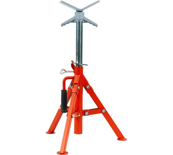 Опорная стойка с V-образной подставкой рассчитана на свободную подачу труб диаметром до 300 мм (12″). Высота регулируется, складная конструкция упрощает перевозку и хранение.