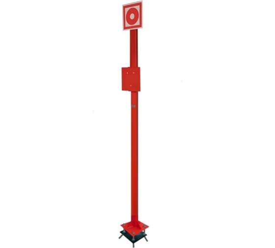 В соответствии с требованиями ГОСТ 12.4.009-83 и СП 484.1311500.2020 МЧС России, для установки извещателей пожарных ручных, устройств дистанционного пуска и оповещателей, типа ИП 535-50/Ex-A «СЕВЕР» 0Ex ia IIC T6 Ga, ИП535/В «Север» 0Ex ia IIC T6 Ga, УДП 535-50 «СЕВЕР» 0Ex ia IIC T6 Ga Х, ИП 535-50 «СЕВЕР», ИП 535-26-A «СЕВЕР», УДП 535-50 «СЕВЕР», ОС-12/В «АЯКС» при отсутствии стен или других строительных конструкций. Стойка выполнена из профильной трубы черного металла с защитным покрытием (окраской) красного цвета.