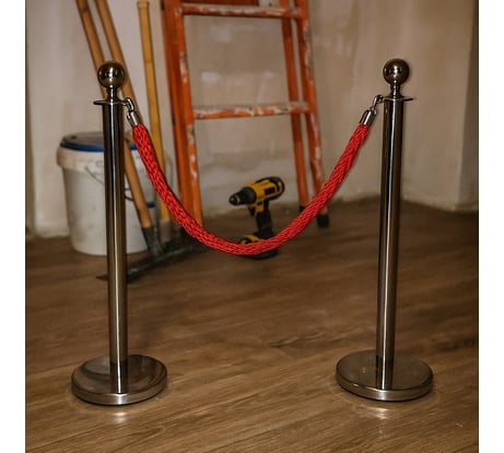 Использую для организации очередей в магазине — изделие прочное, выглядит красиво, канат на карабинах крепкий. Устанавливается и переносится легко.