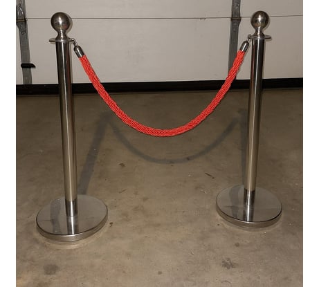 Приобрел стойку с канатом для организации очереди возле склада. Стойка сделана из металла, краска ровная, ничего не облезает. Канат крепкий, легко натягивается и снимается. Ставится и убирается быстро, удобно передвигать. Очень помог решить вопрос дисциплины и порядка.
