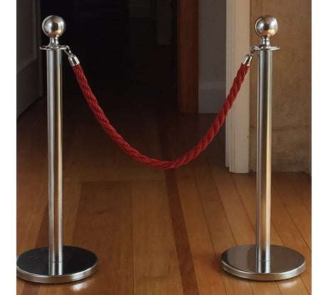Использовали на мероприятии, чтобы регулировать очередь. Стойка прочная, канат не провисает и не соскальзывает. Выглядит аккуратно и современно.