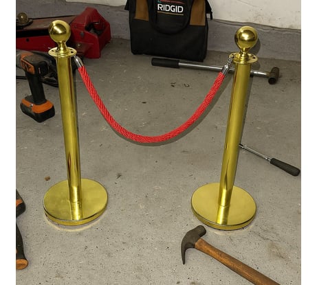 На церемонии открытия использовали эту стойку с красным канатом – смотрится солидно и пафосно. Очень качественная, устойчиво стоит, металл не гнётся, а лак не облезает. Классный способ сделать мероприятие более VIP-совместимым и отгородить важные зоны.