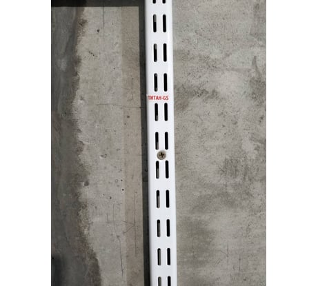 Стойки для монтажа кронштейнов располагаются на несущем рельсе и крепятся к стене. На стойке имеется два ряда пазов для крепления специальных кронштейнов под полки и перекладины. Порошковое полимерное покрытие белого цвета