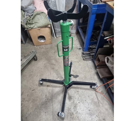 Платформа устойчиво фиксируется на любом уровне, а 600 кг не предел, а реальная рабочая нагрузка. Уже сняли 3 КПП (включая тяжёлую 5-МКПП от Toyota Land Cruiser Prado) стойка не дрогнула. Колёса поворотные с фиксацией легко заводится под автомобиль даже в узком пространстве. Для небольшого сервиса или продвинутого гаража идеальный выбор.