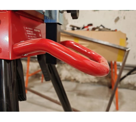 Отличный, крепкийстол, ноесть один большой минус! Если по уровню станины Metabo выставлять правый ролик, то стойка его уперается в ручку, на фото видно. Ребята производители, но вы не круче пока чем Metabо, стелайте ручку на 2-3 мм уходящую ниже и все гуд будет.