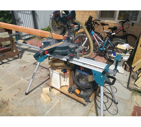 После того как собрал и установил торцовку первая мысль была "Как же я раньше без стола работал!?" Думал что при транспортировке в собраном виде с пилой будет пытатся свалится в бок изза узкой колёсной базы... нормально катется даже по неровностям, чуть придерживать пилу надо и всё.