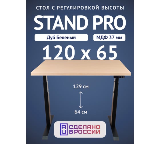 Стол двухмоторный с регулируемой высотой Stand PRO UPSTOL, подстолье черное и столешница МДФ шпон Беленый дуб 120х65 Z650ВBD12065