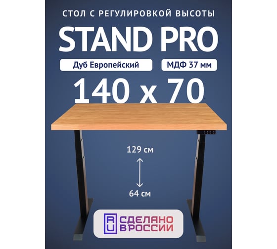 Стол двухмоторный с регулируемой высотой Stand PRO UPSTOL, подстолье черное и столешница МДФ шпон Дуб европейский 140х70 Z650ВDE14070
