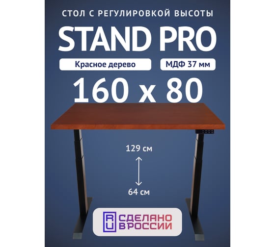Стол двухмоторный с регулируемой высотой Stand PRO UPSTOL, подстолье черное и столешница МДФ шпон Красное дерево 160х80 Z650ВKD16080