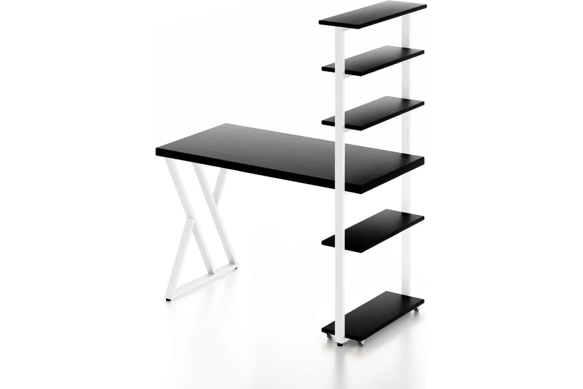 Стол компьютерный Solarius Loft с пятью полками, столешница цвета черного оникса из массива сосны 40 мм и белые металлические Z-образные ножки, 100x80x145 см stol-comp10080onix-Z-white