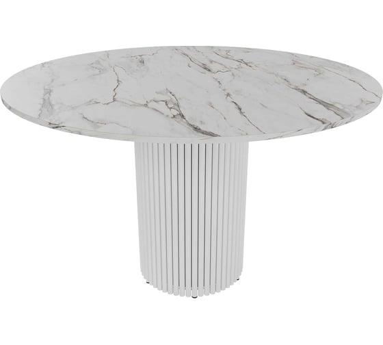 Стол круглый обеденный GENGLASS с металлическим подстольем 400х400 мм, TRUBIS Wood, белое подстолье, столешница белый мрамор 120 см GGT-03-3-5-L-120
