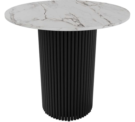 Стол круглый обеденный GENGLASS с металлическим подстольем 400х400 мм, TRUBIS Wood, черное подстолье, столешница белый мрамор 80 см GGT-03-2-5-L-80