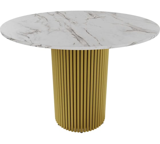 Стол круглый обеденный GENGLASS с металлическим подстольем 400х400 мм, TRUBIS Wood, золотое подстолье, столешница белый мрамор 100 см GGT-03-1-5-L-100