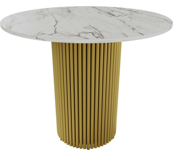 Стол круглый обеденный GENGLASS с металлическим подстольем 400х400 мм, TRUBIS Wood, золотое подстолье, столешница белый мрамор 90 см GGT-03-1-5-L-90