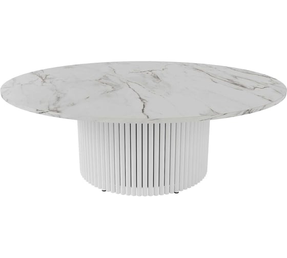 Стол круглый обеденный GENGLASS с металлическим подстольем 600х600 мм, TRUBIS Wood, белое подстолье, столешница белый мрамор 120 см GGT-03-3-5-M-120