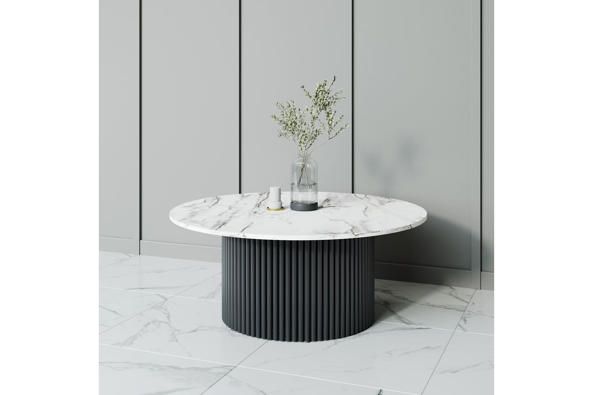 Стол круглый обеденный GENGLASS с металлическим подстольем 600х600 мм, TRUBIS Wood, черное подстолье, столешница белый мрамор 120 см GGT-03-2-5-M-120