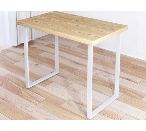 Стол кухонный Solarius Loft со столешницей без шлифовки и покрытия из массива сосны 40 мм и белыми металлическими ножками, 110x70x75 см 700-10381