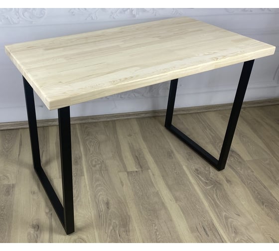 Стол кухонный Solarius Loft со столешницей без шлифовки и покрытия из массива сосны 40 мм и черными металлическими ножками, 70x60x75 см 700-10286