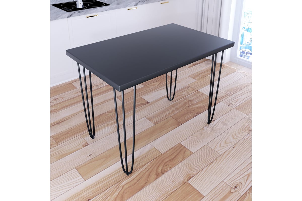 Стол кухонный Solarius Loft со столешницей цвета антрацит из массива сосны 40 мм на черных металлических ножках-шпильках, 120x70x75 см 710-10177