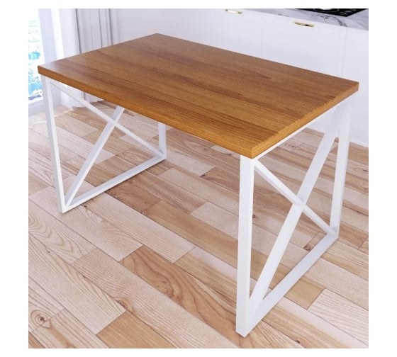 Стол кухонный Solarius Loft со столешницей цвета ольхи из массива сосны 40 мм и белыми металлическими крестообразными ножками, 100x60x75 см 702-10393