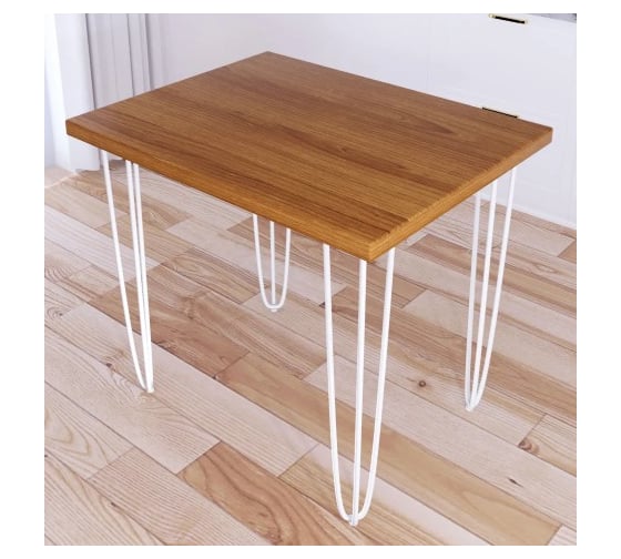 Стол кухонный Solarius Loft со столешницей цвета ольхи из массива сосны 40 мм на белых металлических ножках-шпильках, 70x60x75 см 710-10409