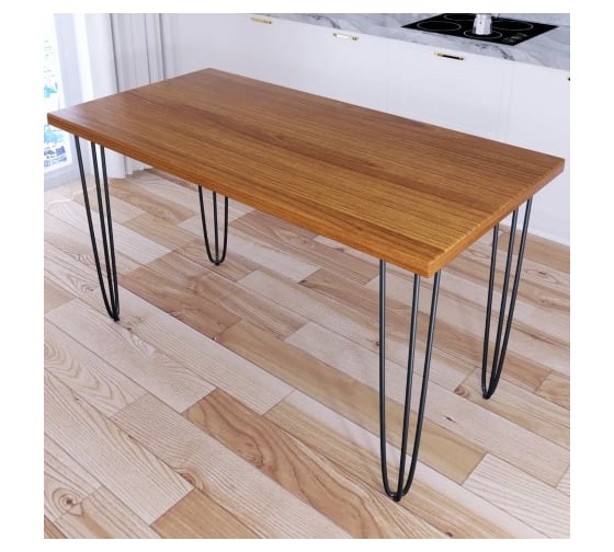 Стол кухонный Solarius Loft со столешницей цвета ольхи из массива сосны 40 мм на черных металлических ножках-шпильках, 110x60x75 см 710-10536
