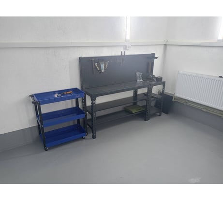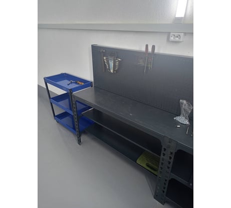 Можно использовать в столярных и слесарных мастерских. Рациональное хранение различных предметов на полках и перфопанели.