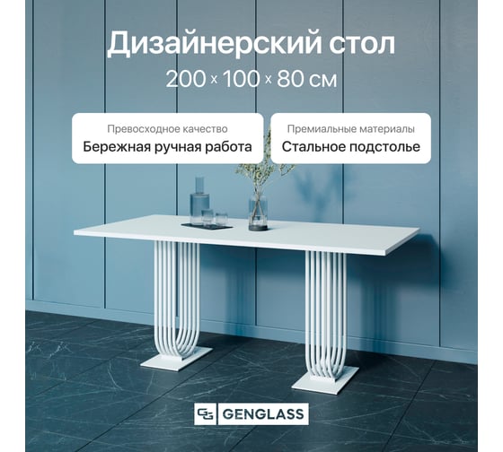 Обеденный прямоугольный кухонный стол GENGLASS ARFEO Duo, 200х100 GGT-28-3-3-200-100
