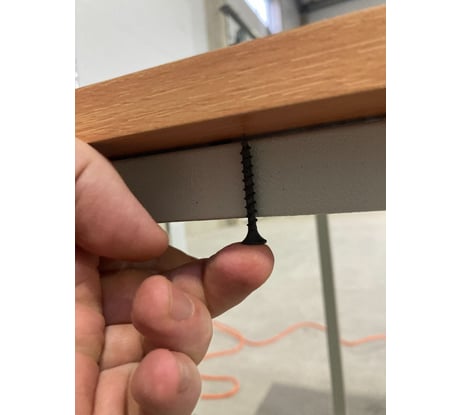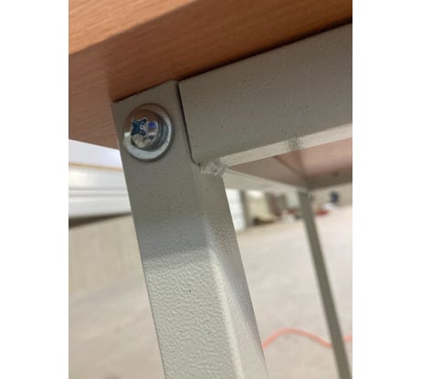 Крепление столешницы на 6 коротких саморезов, которые в итоге просто вырвало из неё, каркас слабо проварен на углах