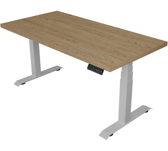 Стол с регулируемой высотой StolStoya ТАМЕРЛАН подстолье белое и столешница МДФ шпон Дуб европейский 140х70 см PE412WDE14070