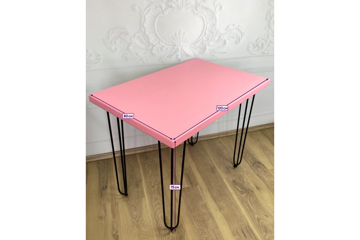 Стол Solarius Loft из массива сосны, 40 мм, на шпильках, 120x80x75 см, цвет розовый 710-10006