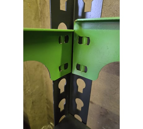 Максимум распределённой нагрузки на весь верстак составляет - до 350 кг. Максимум распределённой нагрузки на полку составляет - до 100 кг. Крепление безболтовое.