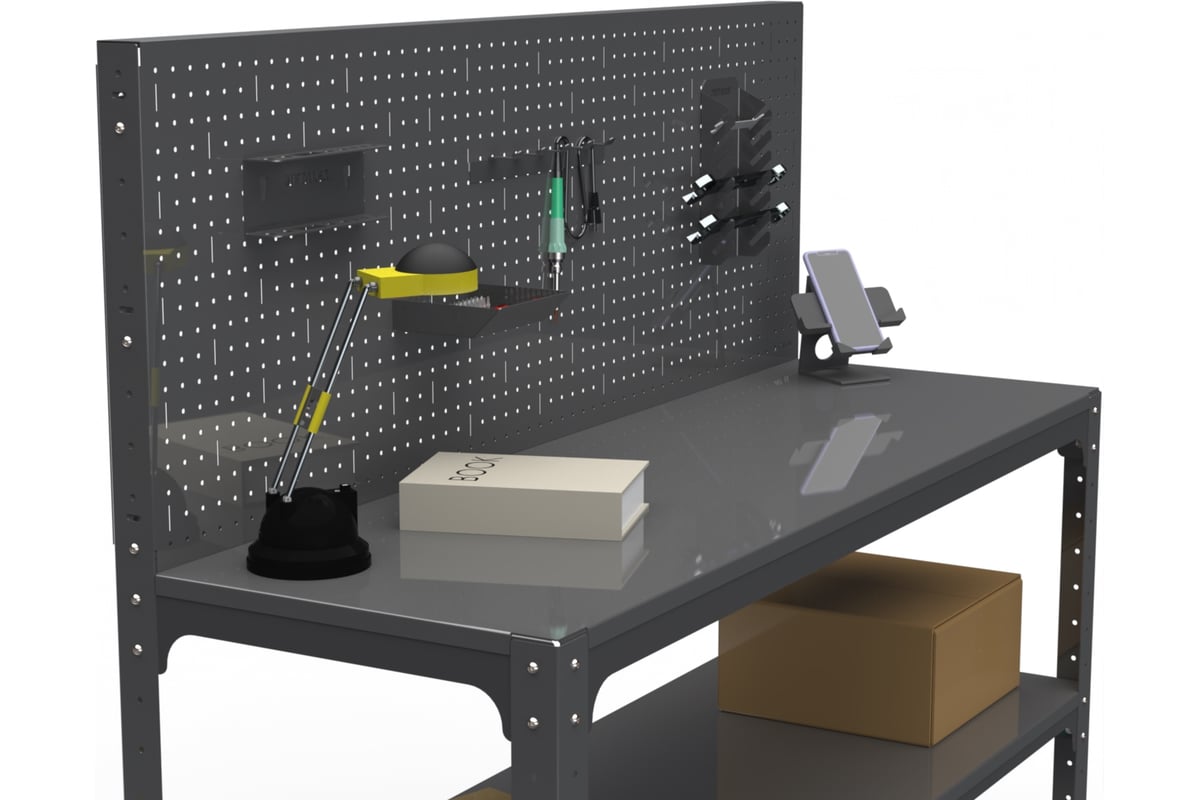 Преимущества стола-верстака ООО Металекс KIT 950х1000х400 мм, две полки + перфопанель с комплектом аксессуаров, серый