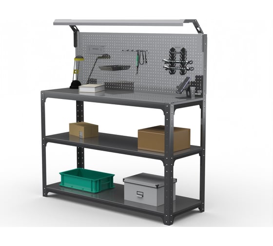 Расходные материалы для стола-верстака ООО Металекс серия KIT 950х1800х500 мм, 2-е полки + перфопанель с комплектом освещения, серый 205332