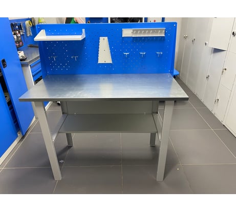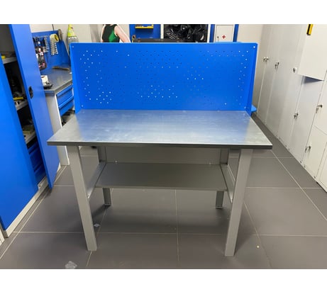 Толщина металла для верстака очень тонкая. аналогичный взял в Вертон на Грайвороновской и металл отличается. У них лучше но цвет светло-серый. И еще много чего разного у них есть под верстак и в гараж. Верстак их на фото. серый с синим
