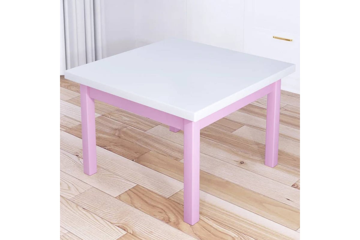Стол журнальный квадратный Solarius Классика с белой столешницей из массива сосны 40 мм и розовыми ножками, 60x60x46 см 601-10101