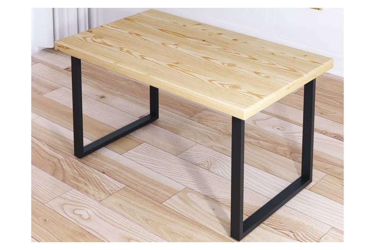 Стол журнальный Solarius Loft со столешницей из массива сосны 40 мм без шлифовки и покраски с черными металлическими ножками, 120x70x50 см 701-10220