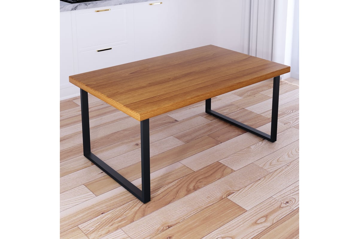 Стол журнальный Solarius Loft со столешницей цвета ольхи из массива сосны 40 мм и черными металлическими ножками, 100x60x50 см 701-10292