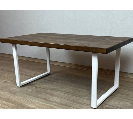 Стол журнальный Solarius темный дуб лофт (Loft) из массива сосны 40 мм, 110x60x50 см, на белых ножках 701-10014
