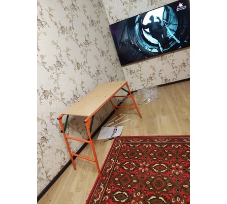 Универсальный столик « Флекс-1» лучший помощник для ремонтных, строительных, малярных, отделочных и всевозможных иных работ. Столик укомплектован винтом с удобной гайкой «барашек». Толщина фанерного настила 12 мм. Прекрасная замена тяжелым, неудобным, деревянным козлам, неустойчивым лестницам - стремянкам и кухонным табуреткам. Легкий, компактный, сборно-разборный, мобильный.